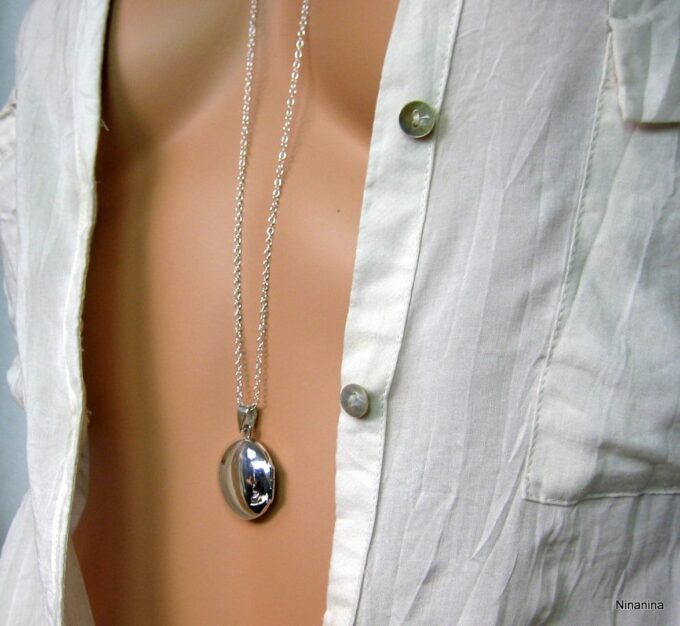 Une longue et fine chaîne en argent 925 sobre et robuste soutient à hauteur de ventre un pendentif photo qui s’ouvre pour y glisser la photo de l’être cher, un poème ou tout autre chose que l’on tient à toujours garder sur soi! Pour les romantiques, un cadeau qui touche pour la Saint Valentin!