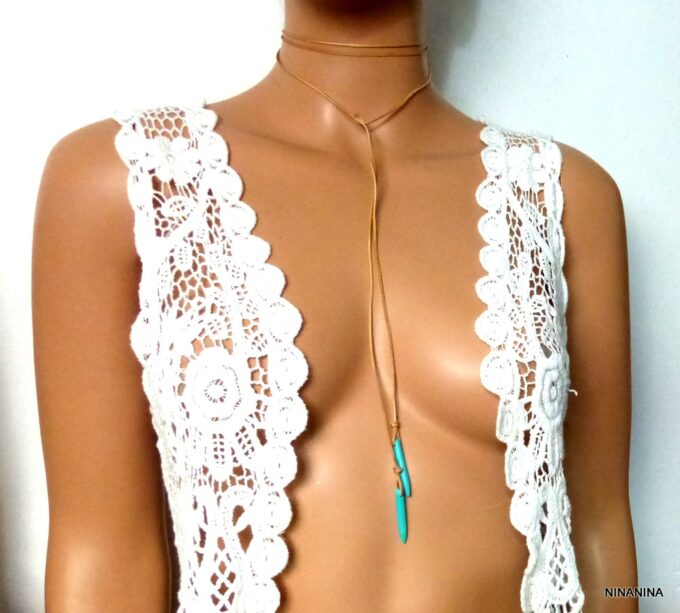 Soyez le premier à laisser votre avis sur “Collier long cordon cuir pendentifs turquoises”