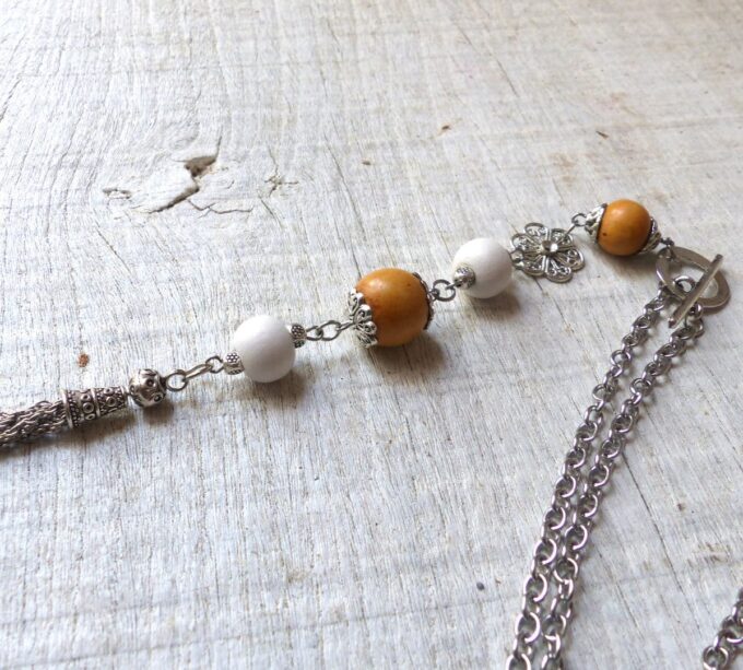 Si vous aimez porter des bijoux, vous serez charmé par l’élégance d’un collier en perles de bois qui apportera à votre style et votre tenue une certaine assurance ! Intemporel, le collier perles bois et pompon se porte au quotidien et vous accompagne presque comme un porte-bonheur.