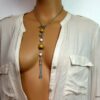 Ce collier pompon ras de cou en Acier inoxydable de haute qualité est fabriqué à la main, de façon artisanale et en série limitée dans notre atelier du sud de la France. Longueur : 42 cm env. Voir boucles d’oreilles assorties (réf. N476).