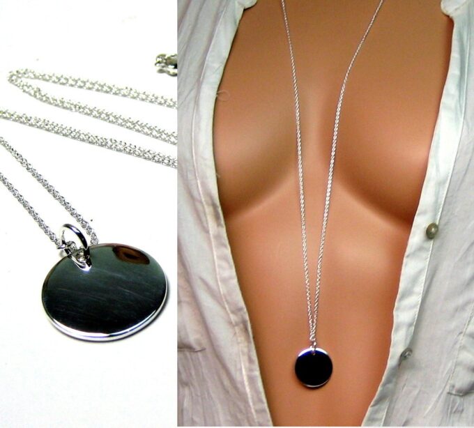 Choisissez ce Sautoir medaille Argent plaqué – Collier long femme composé d’une médaille en argent plaqué montée sur une fine chaînette (1mm de diamètre) en plaqué argent.