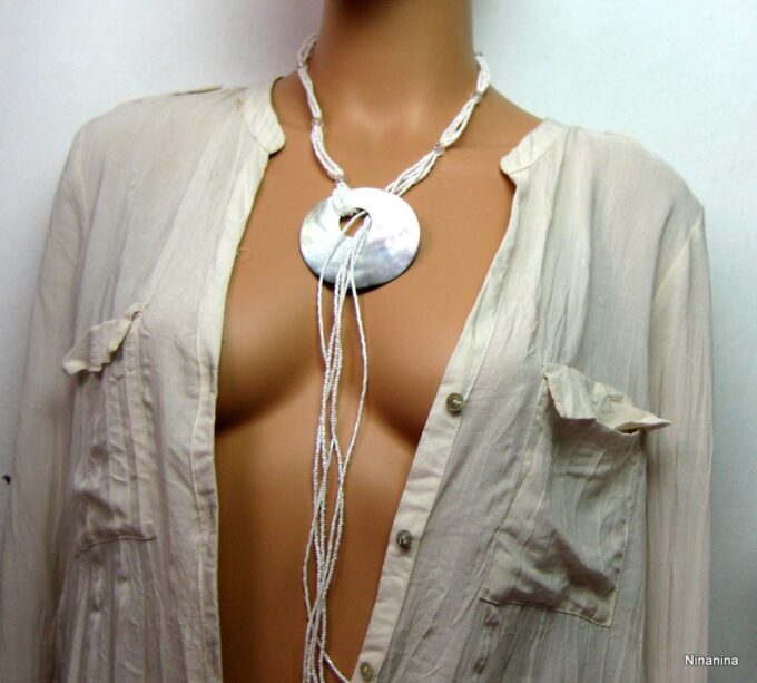 Soyez le premier à laisser votre avis sur “Collier long rocaille blanche et nacre”
