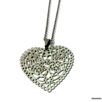 Collier long – sautoir aile d’ange composé d’un pendentif aile en acier inoxydable monté sur une  chainette mailles ovales en acier inoxydable. Dim du pendentif : 6 X 2,5 cm.  Longueur (fermoir compris) : 90 cm. Peut se porter long ou court (2 tours). Fermoir mousqueton. Livré dans sa pochette d’organza. Bijou 100% fait-main.