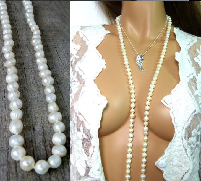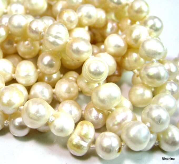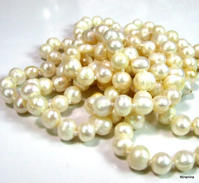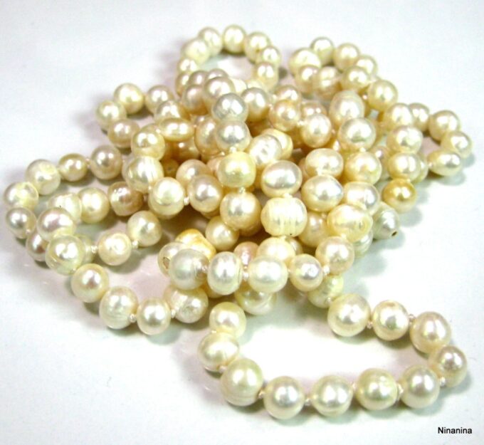 Collier long sautoir perles d’eau douce blanches composé de perles d’eau douce blanches.
