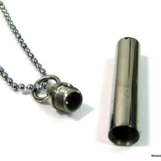 Ce Collier porte-message secret en Acier de haute qualité est fabriqué à la main, de façon artisanale et en série limitée dans notre atelier du sud de la France. Subtil alliage de plusieurs éléments (le fer, le nickel ou le chrome), l’Acier inoxydable est un matériau particulièrement prisé pour ses nombreuses vertus. Il est très solide et robuste, totalement hypoallergénique, ne rouille pas et, contrairement à l’Agent, ne s’oxyde pas. Dim du pendentif devissable : 3,5 X 0,6 cm.