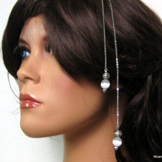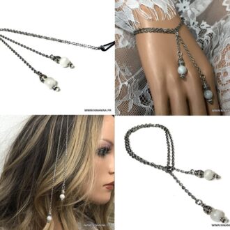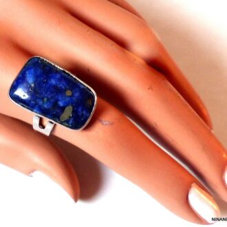 Collier femme perles lapis lazuli pompon métal argenté composé de perles ‘lapis lazuli et métal argenté montés sur chaine maillons ovales en acier inoxydable et terminé par un pompon en métal argenté .