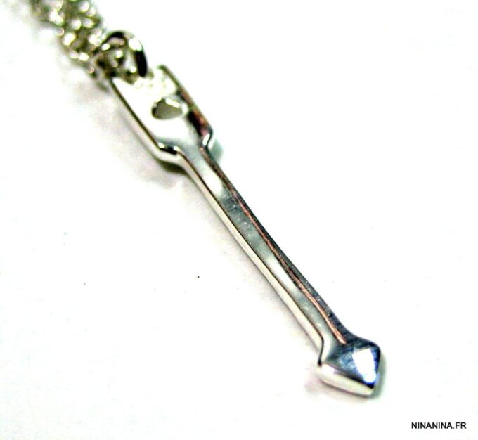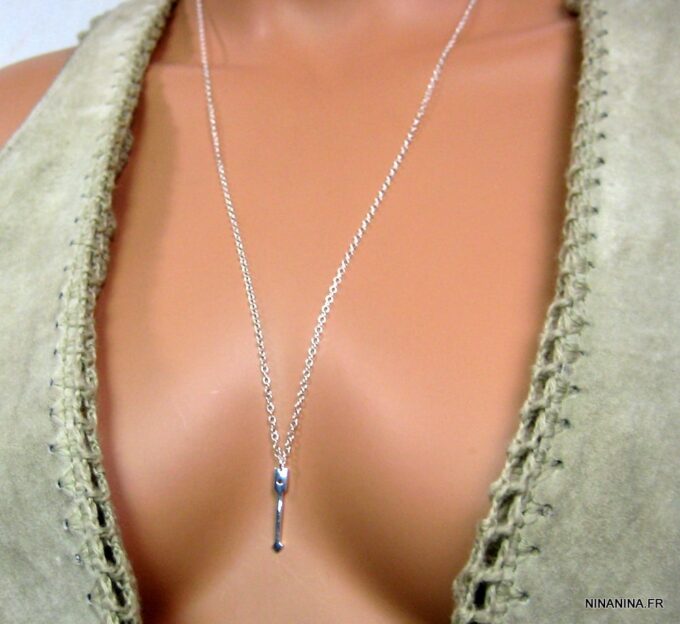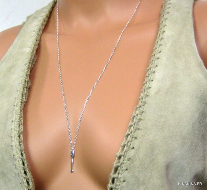 Collier mi-long flèche argent massif composé d’une petite flèche en argent 925 montée sur une chaînette en argent 925. Dim de la flèche : 2,5 X 0,3 cm. Fermoir mousqueton et chainette de rallongement en argent 925. Longueur (fermoir compris) : 65 cm Livré dans sa pochette d’organza. Poids : 3,6 g