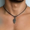 Collier artisanal pour homme avec pendentif Corse en acier argenté sur cordon cuir réglable à nœud coulissant.