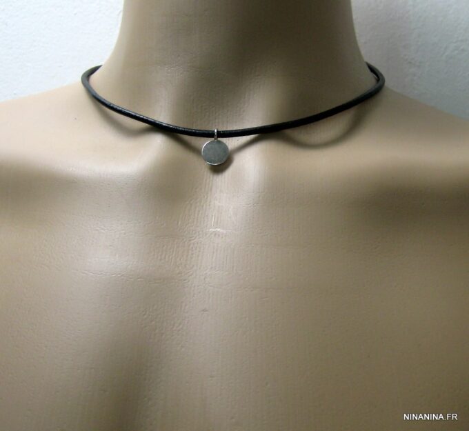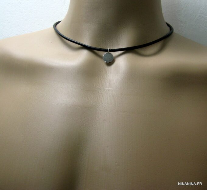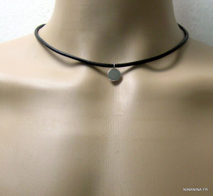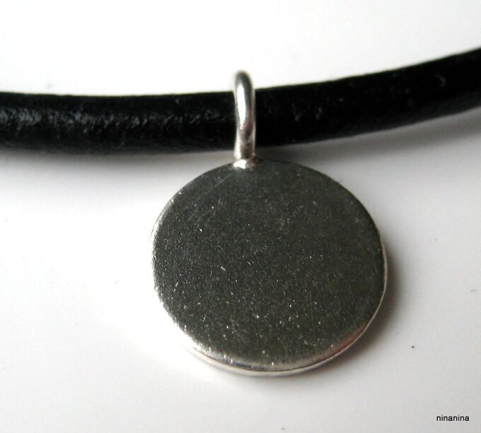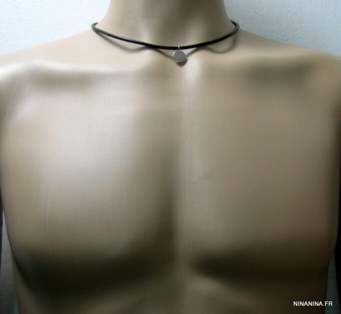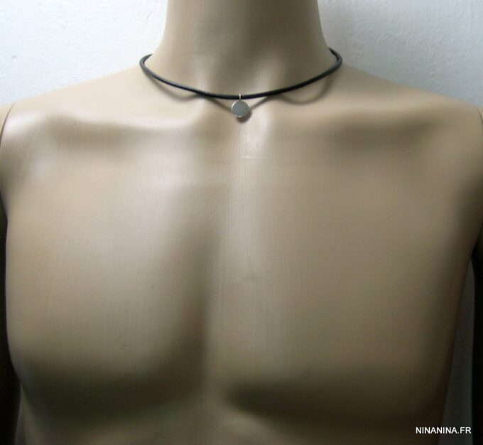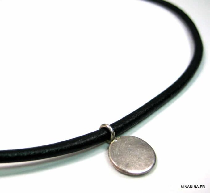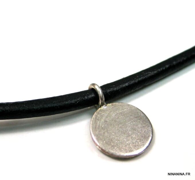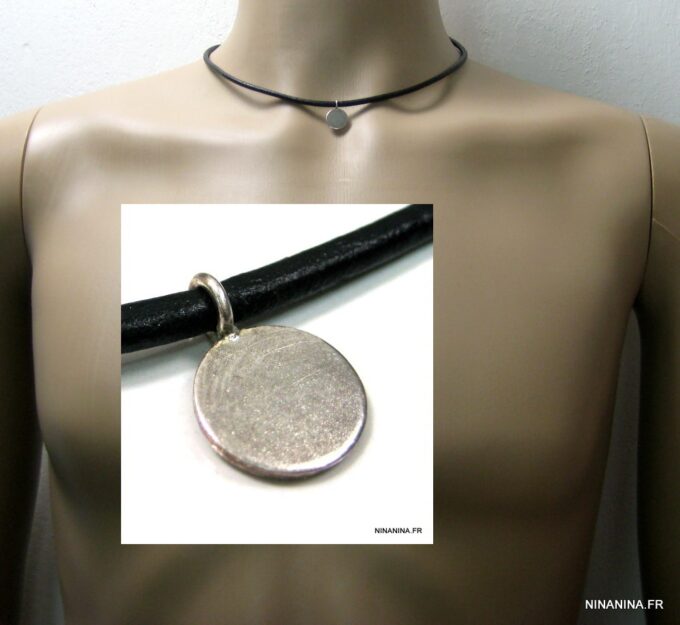 Tour de cou homme medaille argent 925 cordon cuir composé d’une médaille ronde en argent 925 montée sur un cordon de cuir noir.