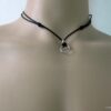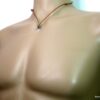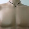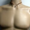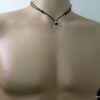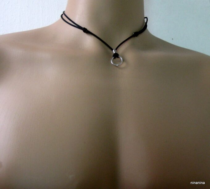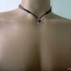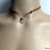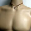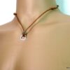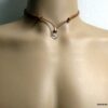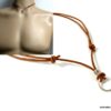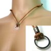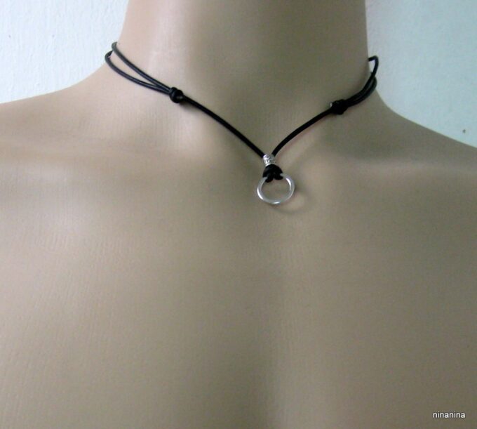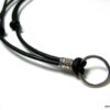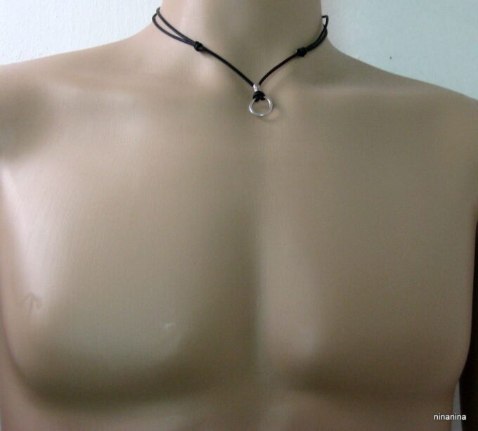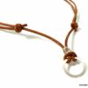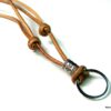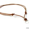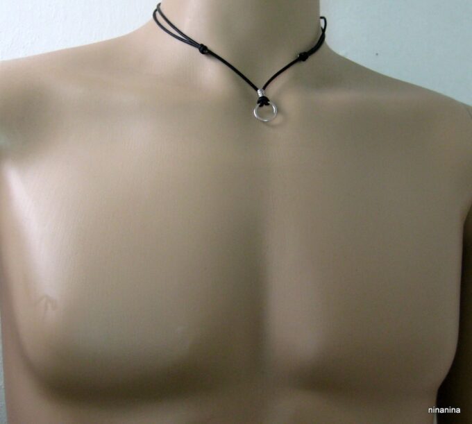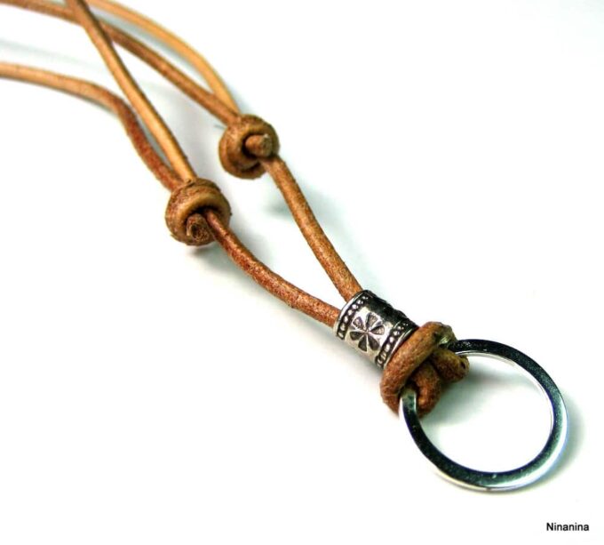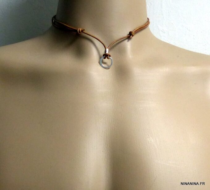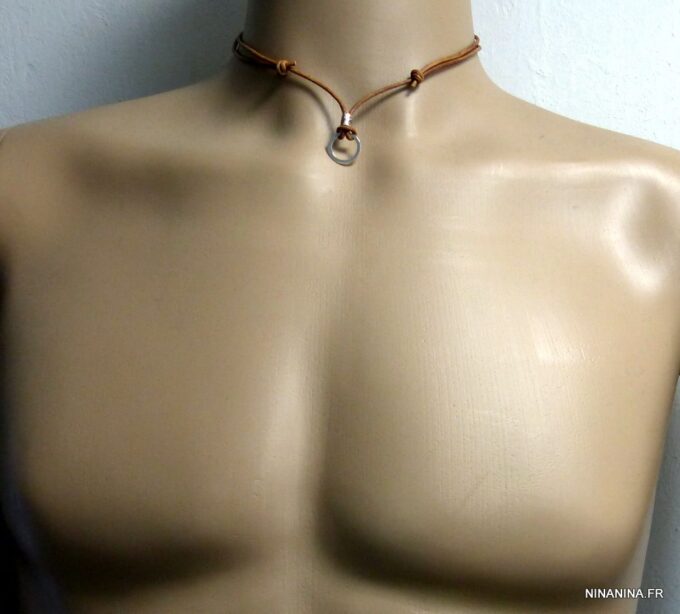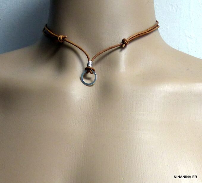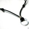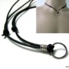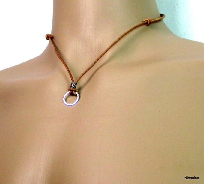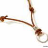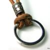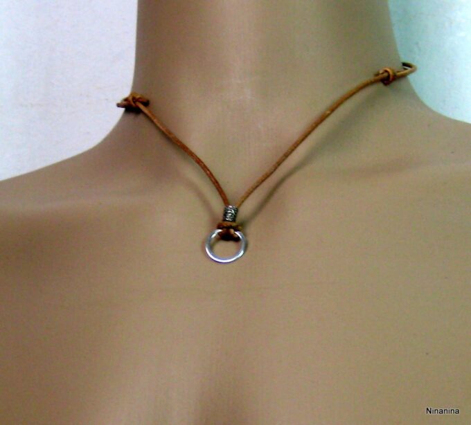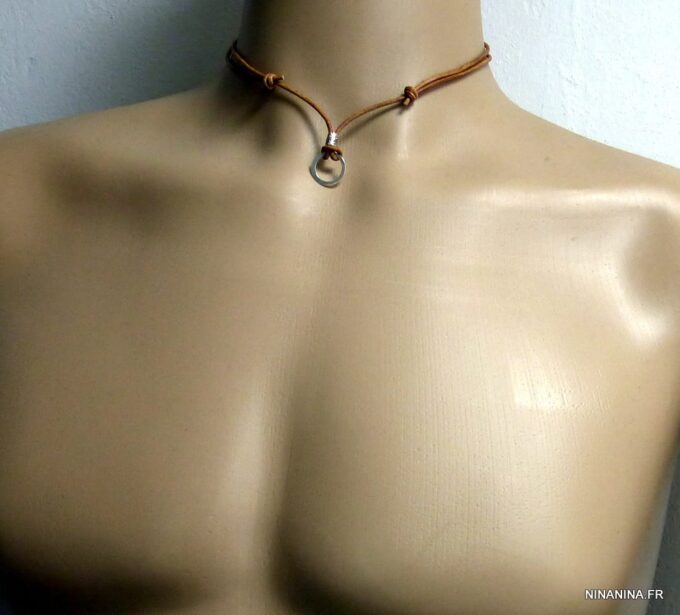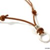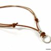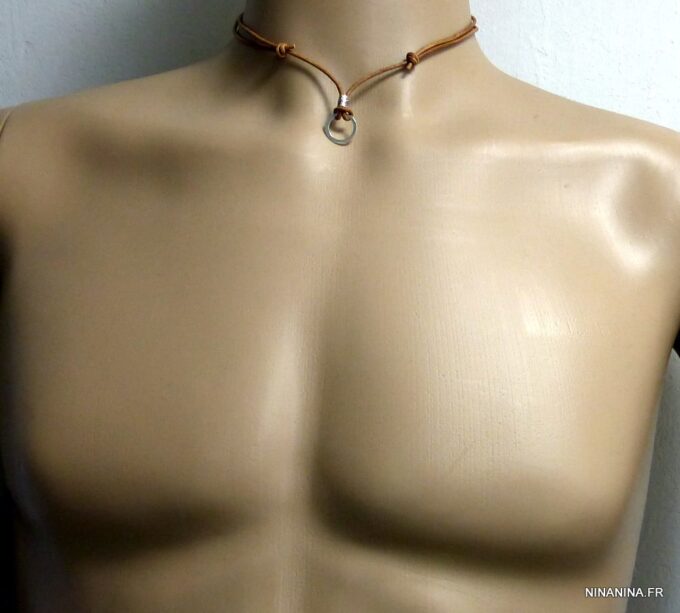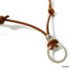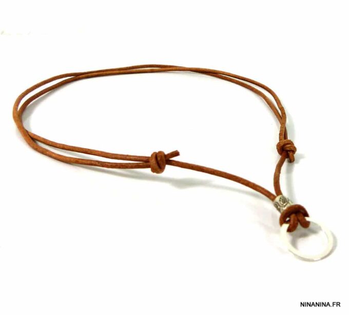 Collier homme cordon cuir anneau argent massif composé d’un anneau et d’une perle cylindrique ciselée en argent 925 montés sur un double cordon de cuir naturel.