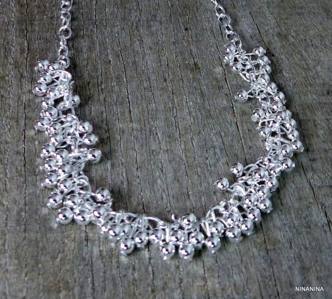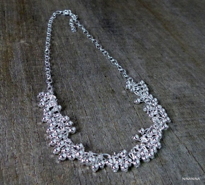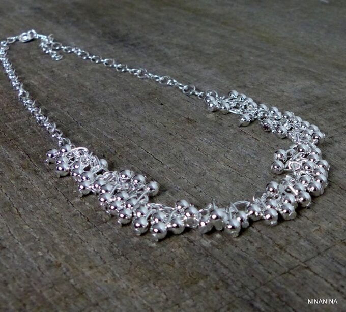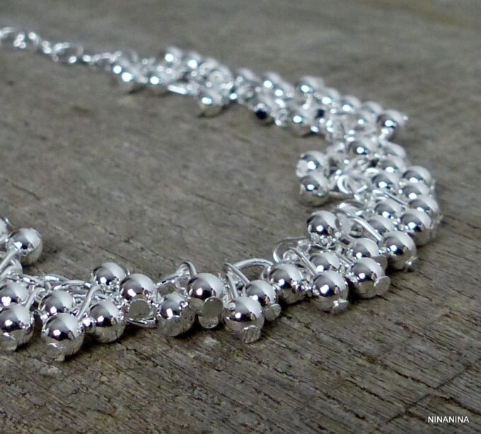 Collier Argent Perles multiples plaqué Argent femme composé de multiples petites perles en plaqué argent (4mm) montées sur chainette maillons ovales en plaqué argent.