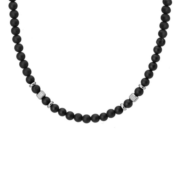 Collier onyx noir 6mm 55 cm et Acier Inoxydable