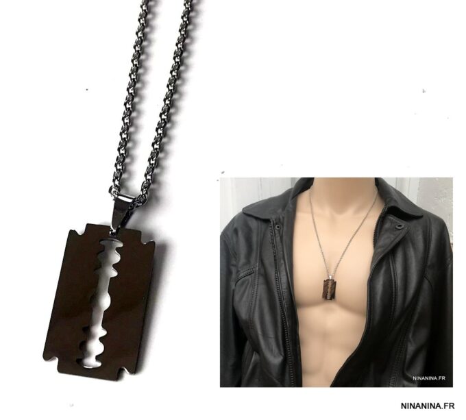 Si vous aimez les colliers homme, ce collier et son pendentif lame de rasoir ajouteront sans effort une touche rebelle à votre look unique. Look bad boy et virilité assurée!