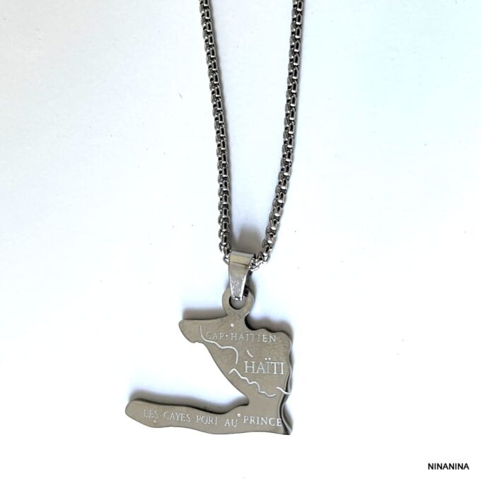 Commandez dès maintenant votre collier pendentif carte Haïti acier inoxydable et recevez-le rapidement !