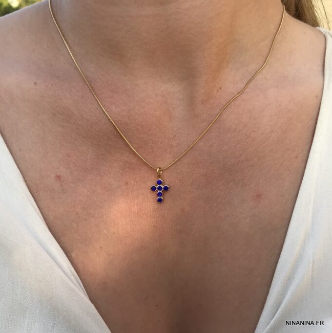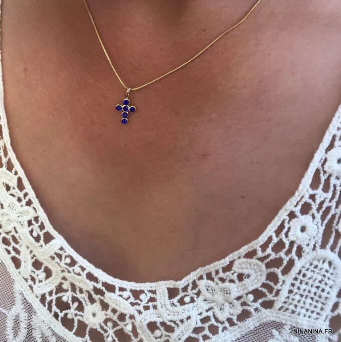 Comment porter le collier pendentif croix bleue?