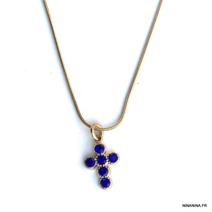 Un collier pendentif croix bleue de fabrication française