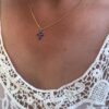 Portez ce joli collier croix tendance seul pour un look minimaliste ou en superposition avec d’autres colliers femme Ninanina.