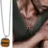 Découvrez ce Collier Pendentif Oeil de Tigre carré acier inoxydable ! Il est composé d’un pendentif de forme carrée en pierre naturelle Oeil de Tigre monté sur une chaine maille vénitienne en Acier chirurgical. Un collier pour hommes au design aussi sobre et élégant que possible visant à mettre les pierres naturelles sur le devant de la scène. Il se termine par un fermoir mousqueton en acier inoxydable, sûr et facile d’utilisation.