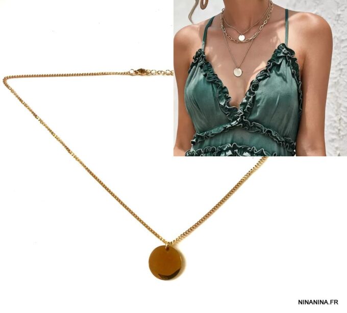 Sobre, élégant et délicat, ce collier féminin et son médaillon couleur or pourrait être LE collier que vous ne quitterez plus de l’été!