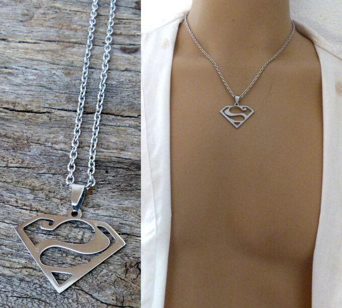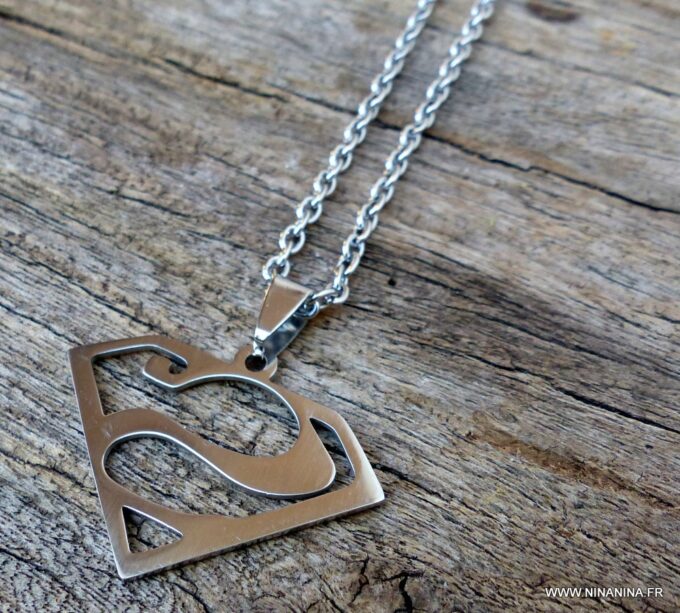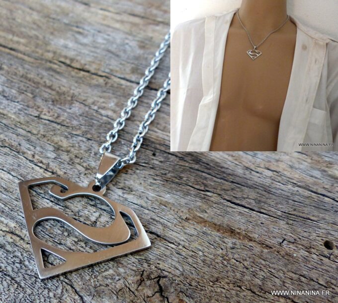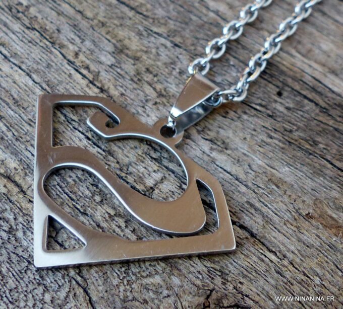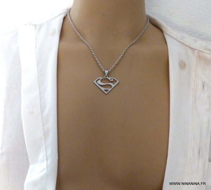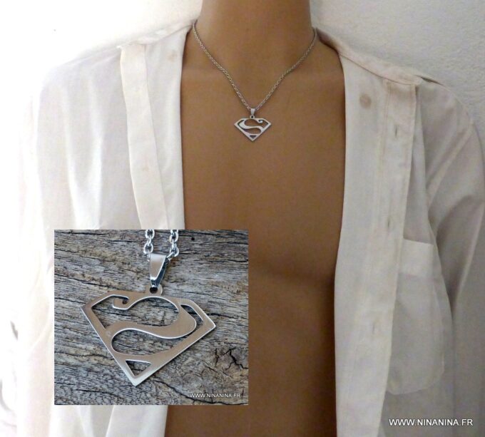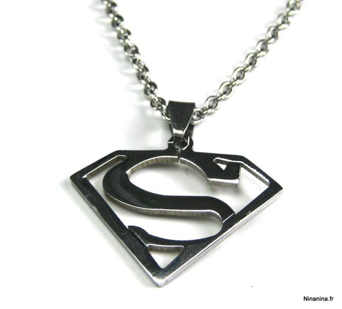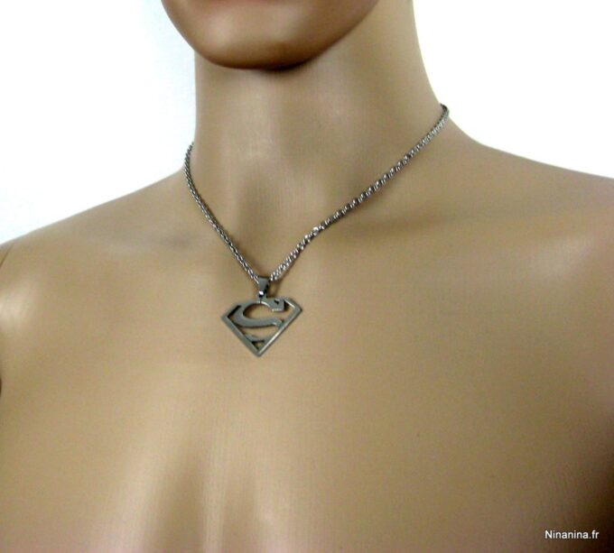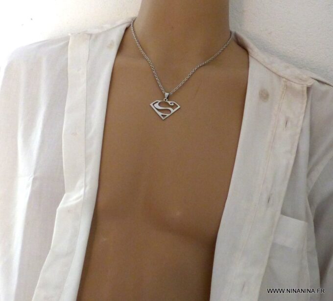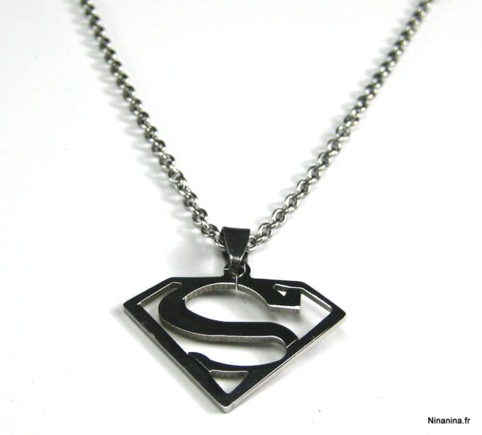 Collier homme Acier argenté pendentif superman composé d’un pendentif superman triangulaire en acier inoxydable argenté monté sur une chaine en acier inoxydable.