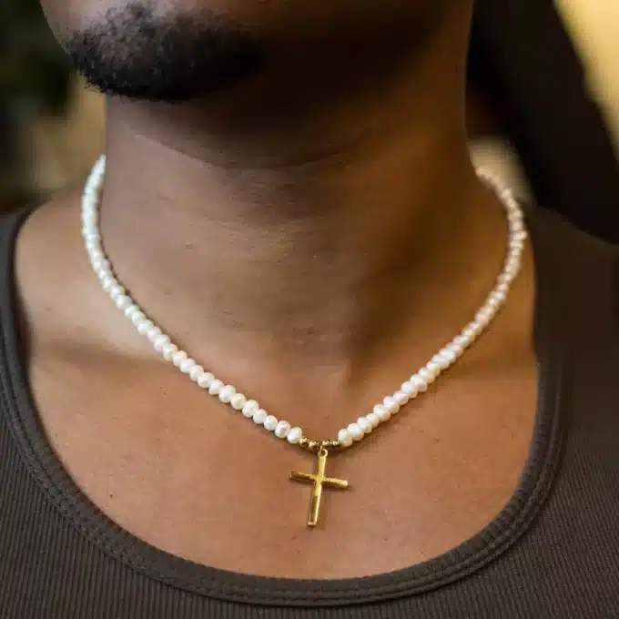Porter un collier perle croix est donc un moyen de marier style et spiritualité, en exprimant vos valeurs à travers un bijou chic et masculin.