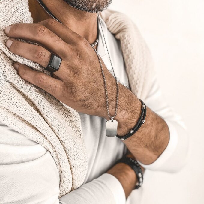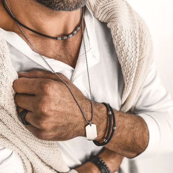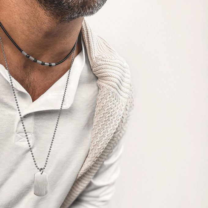 • 50 cm : c’est la longueur standard de chaîne pour homme. Elle descend au niveau des clavicules.