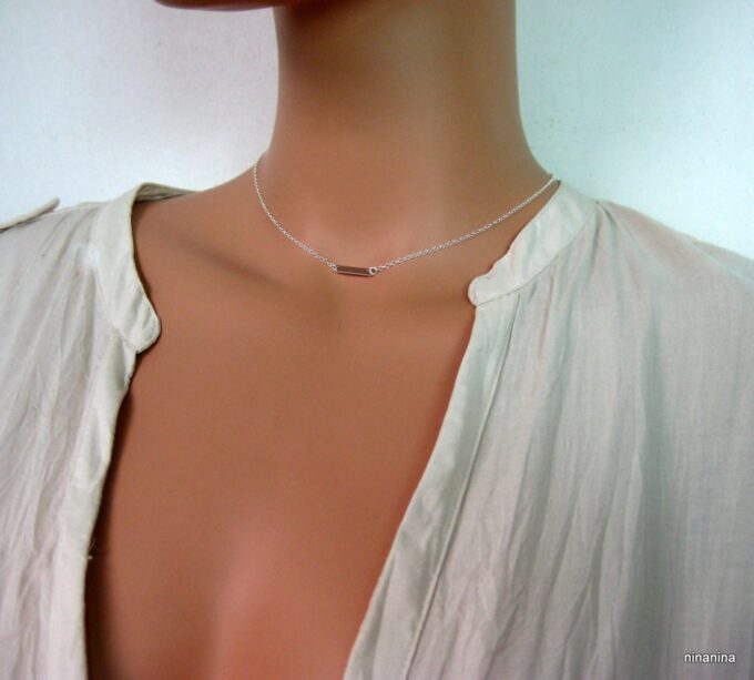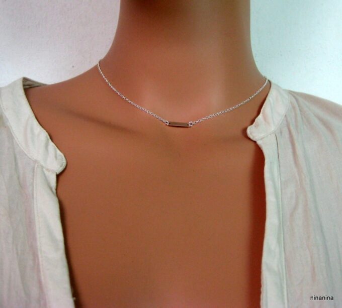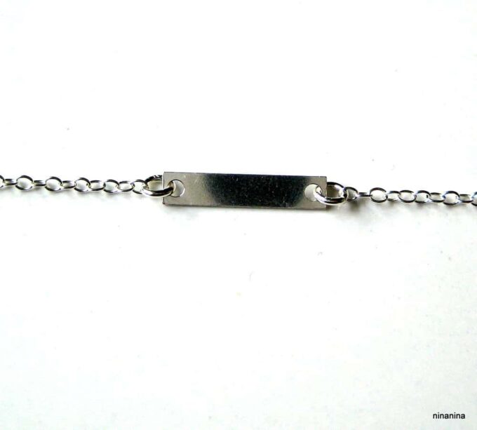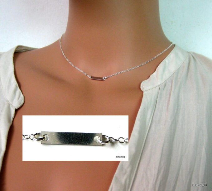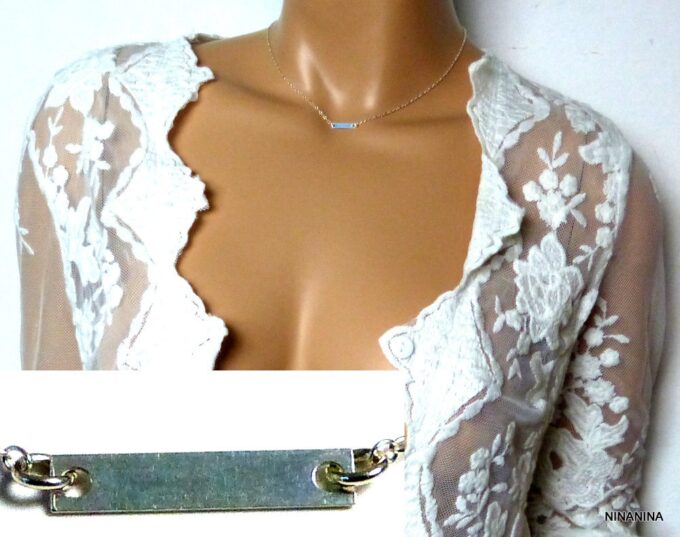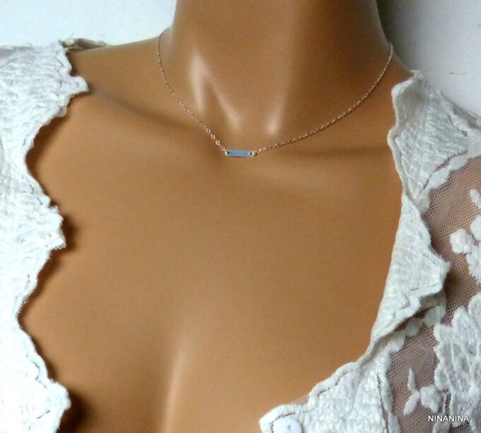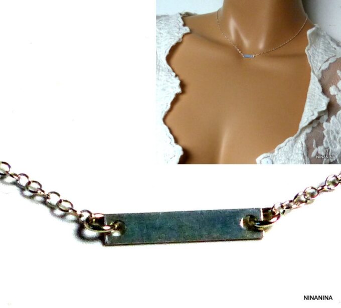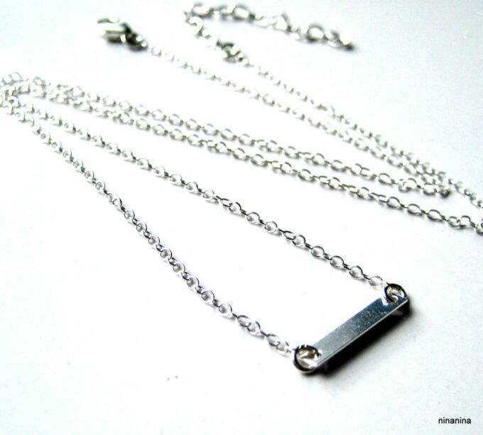 Collier Fin Argent 925 massif femme plaque rectangulaire composé d’une entretoise rectangulaire en argent 925 montée sur une fine chainette en argent 925.