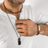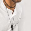 Ce Collier homme de haute qualité est fabriqué à la main, de façon artisanale et en série limitée. Chaque pièce faite sur mesure convient pour la majorité des statures. Longueur : 70 cm. Dim du pendentif : 4 X 2,5 cm. Merci de préciser si vous préférez une autre longueur.