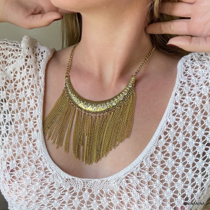 Tendance bijoux : adoptez le collier plastron doré à longues chainettes pour un look glamour!