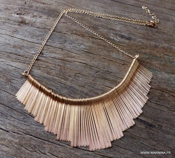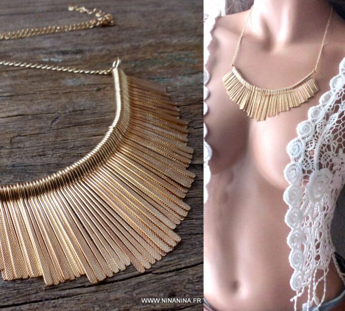 Un Collier Plastron doré frange offrir à une amoureuse de bijoux ethniques !