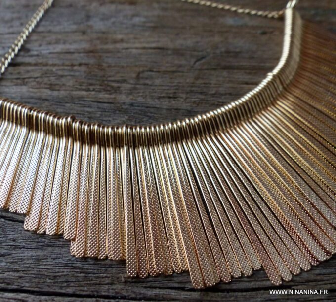 Collier plastron métal doré composé de franges en métal doré.