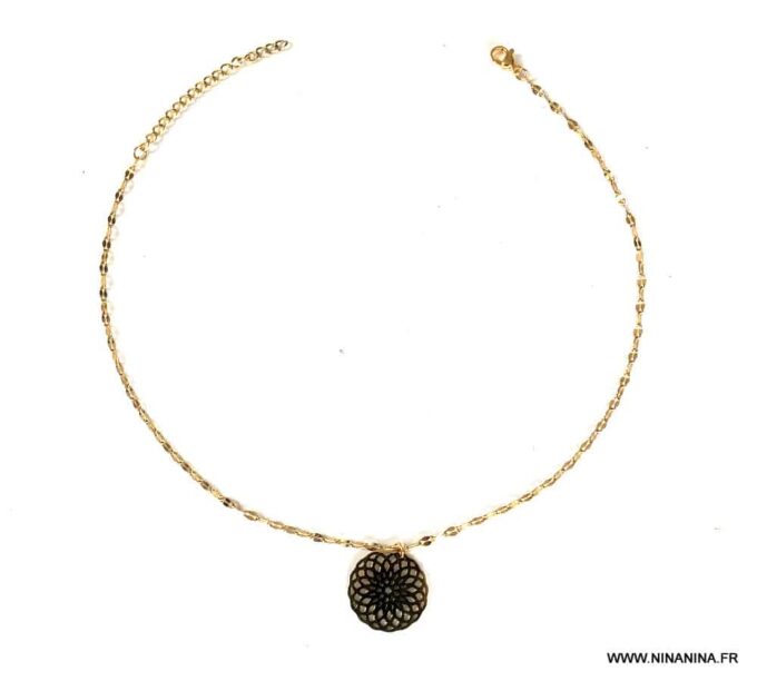 Vous allez fondre pour ce Collier ras de cou pendentif rond acier inoxydable doré de toute beauté ! Une médaille dorée montée sur une chainette maille fantaisie en acier inoxydable doré, ce collier ras du cou réglable ne pourra que vous séduire.