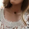 Sobre, élégant et délicat, ce ras de cou plaqué or et son médaillon couleur or pourrait être LE collier que vous ne quitterez plus de l’été!