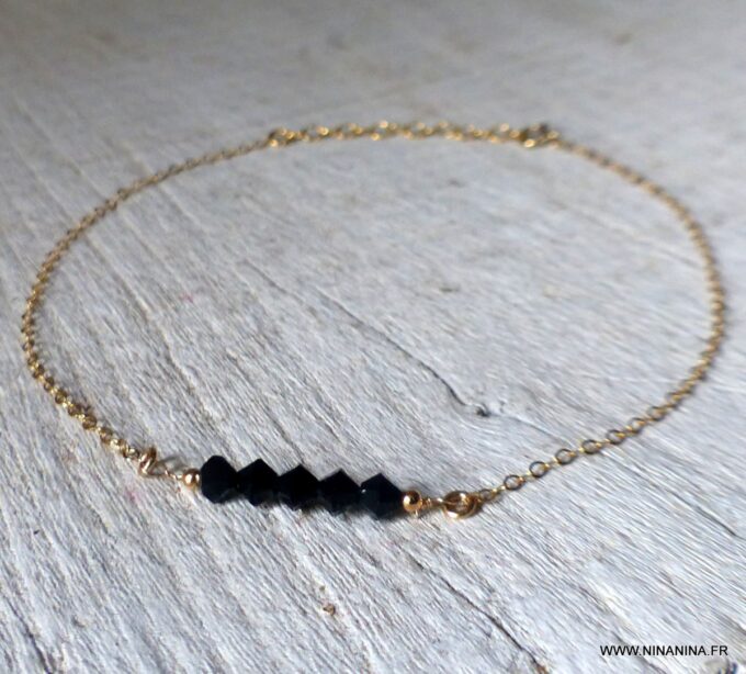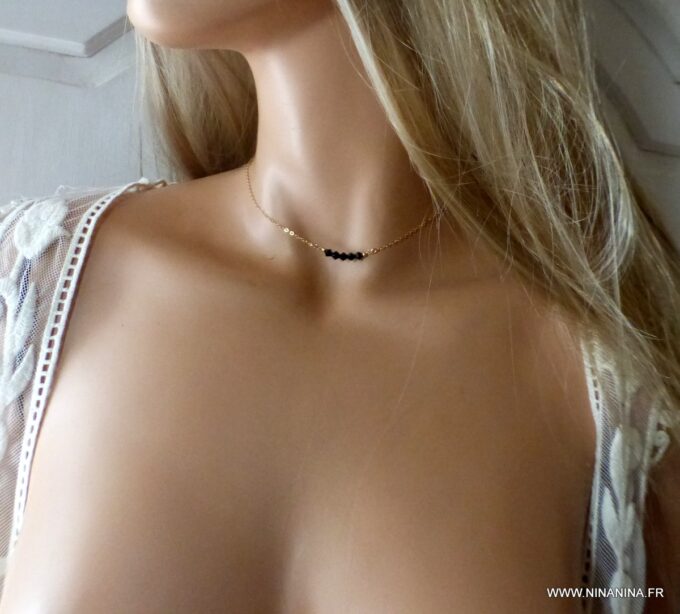 Soyez le premier à laisser votre avis sur “Collier ras du cou Swarovski plaqué or et perles noires”