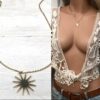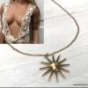 Vous allez fondre pour cet éblouissant collier mode et tendance pour femme! Sa fine et délicate chaîne retient un magnifique astre aux rayons stylisés délicatement découpés dans de l’acier inoxydable doré. Compliments assurés!