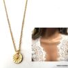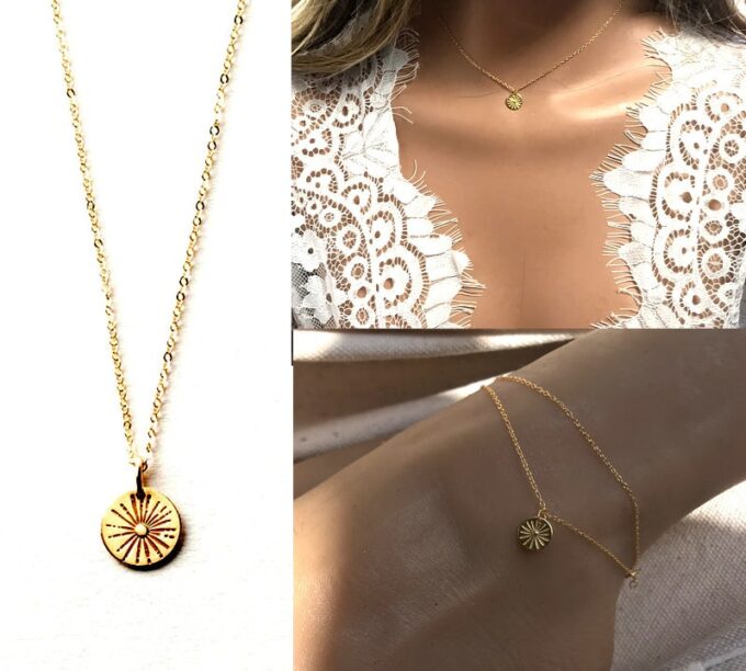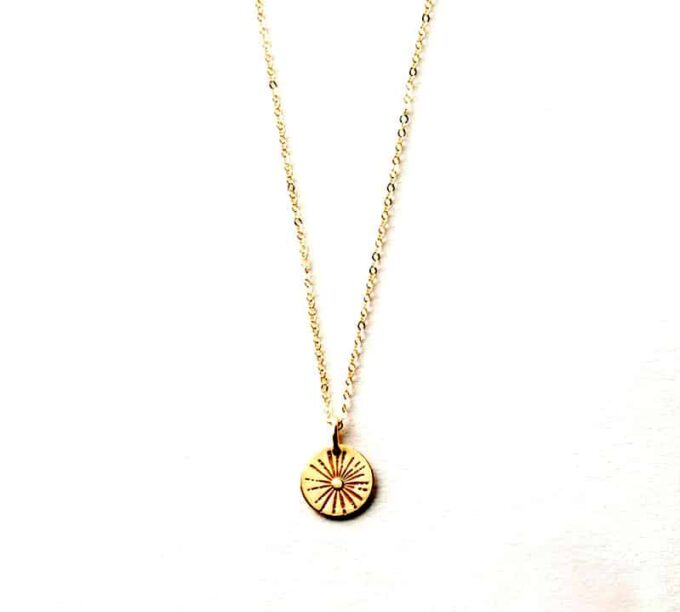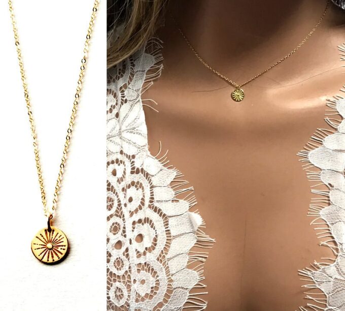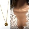 Ajoutez une subtile touche tendance à votre tenue avec ce sublime Collier soleil or plaqué pour femme argent 925 doré et son pendentif rond gravé d’un soleil.