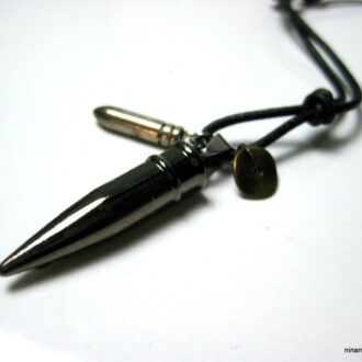 Collier homme cordon pendentif bois composé d’un pendentif triangulaire en bois noir et écru, d’une plaque en métal bronze et d’une perle cylindrique en bois turquoise montés sur un cordon de coton ciré noir (1,5 mm de diamètre).