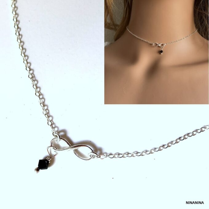 Le Collier Swarovski Infinity en argent 925 avec perle en cristal noir – Un bijou élégant et intemporel