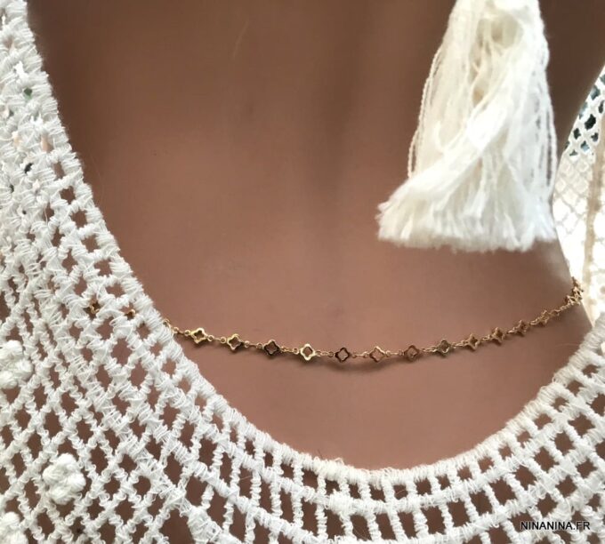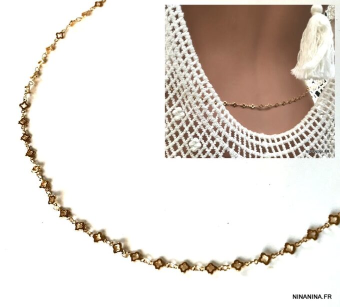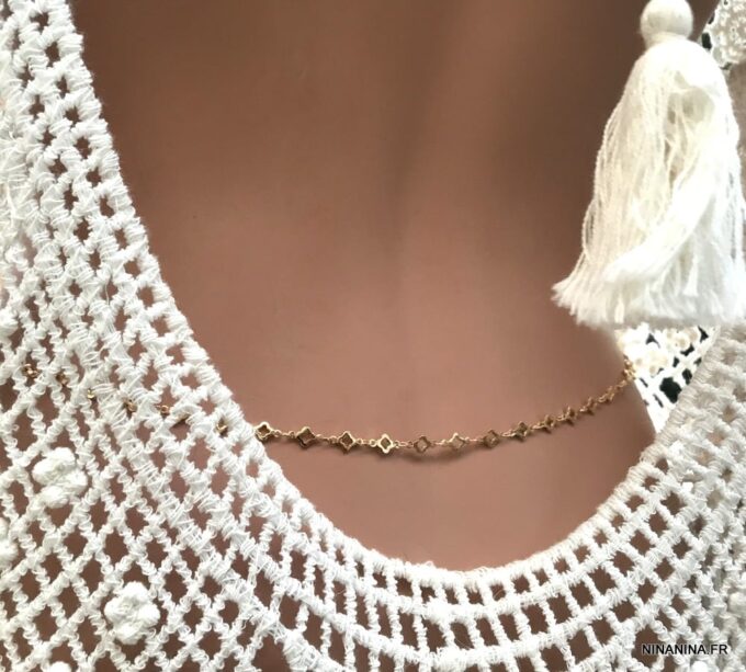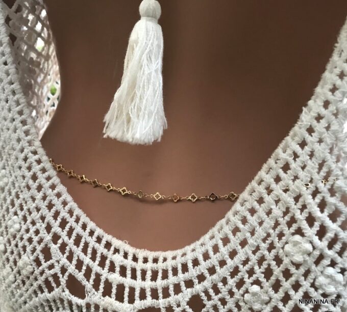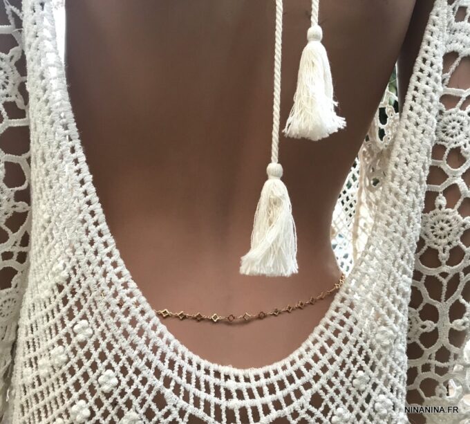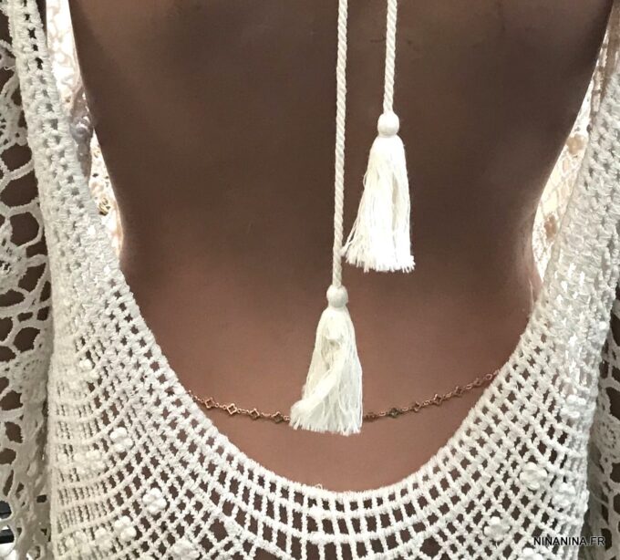 Astuce Ninanina : Vous pouvez également la mettre autour de votre cou et elle deviendra un collier long ou court (2 tours) ou encore l’enrouler plusieurs fois autour de votre poignet et la transformer ainsi en bracelet collier ultra tendance ! Un bijou aussi unique que vous l’êtes !