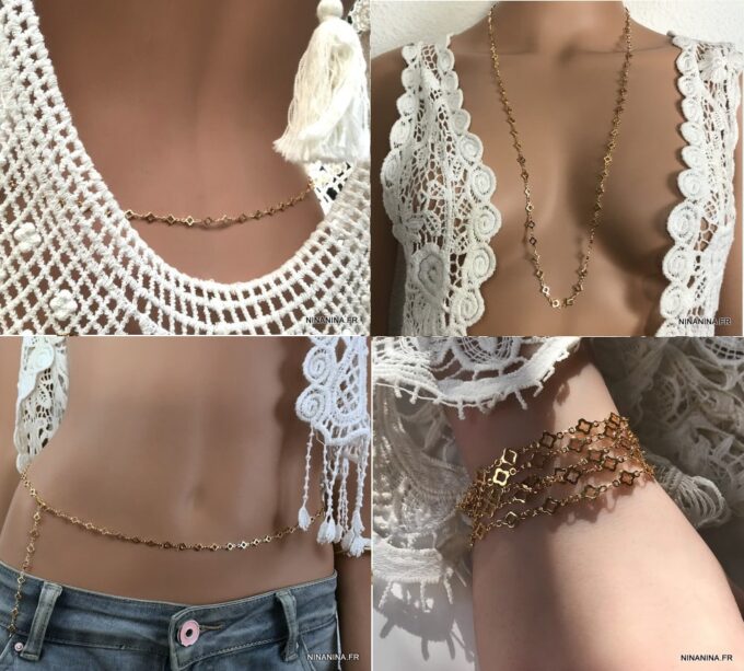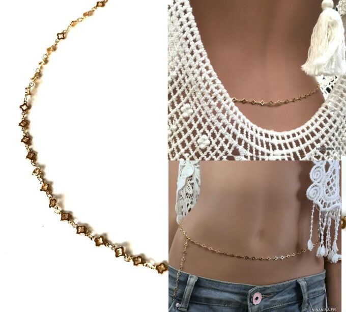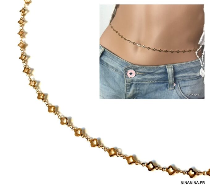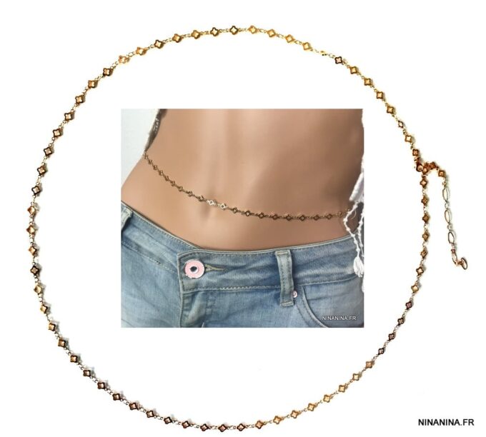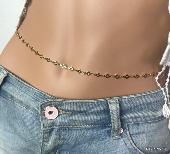 Faites tourner les têtes sur la plage cet été avec ce Collier taille femme laiton doré – Chaine pour hanche dorée sensuel et raffiné et sa maille fantaisie en laiton doré !