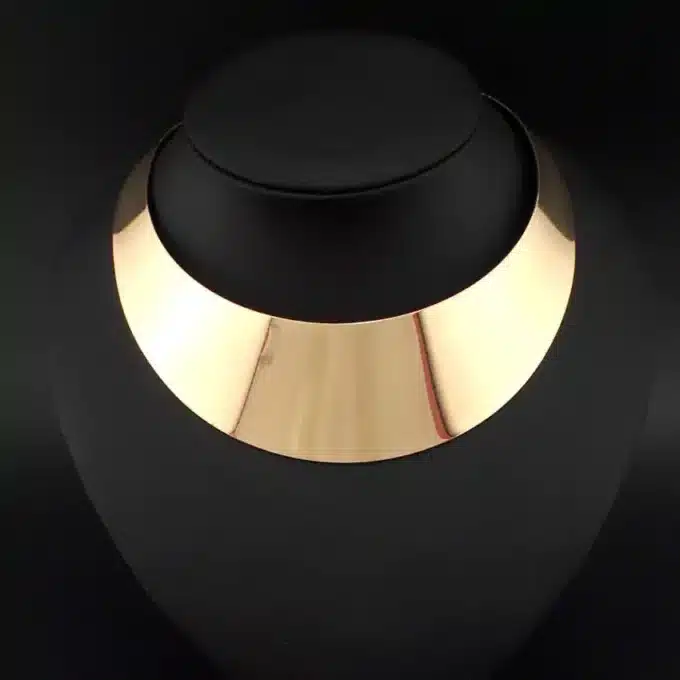 Élégant et raffiné, ce collier torque ethnique, large de 40 mm, aussi appelé chocker ou ras de cou, épousera parfaitement la forme de votre cou et saura vous mettre en valeur à lui seul et ornera à merveilles toutes vos tenues vestimentaires.
