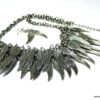 Plastron breloques ailes d ange métal argenté boucles assorties composé de deux rangs de pendentifs ailes d’ange en métal argenté montés sur chaine en métal argenté. Dim des pendentifs : 3 x 0,9 cm. Longueur (fermoir compris) : 45 cm environ.  Fermoir mousqueton et chainette de rallongement. Longueur des boucles d’oreilles : 5 cm. Livré dans sa pochette d’organza.