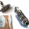 Le pendentif funéraire en argent est décoré à l’extérieur et contient une cavité creusée à remplir de cendres. On accède à la cavité intérieure de la pièce par le bouchon fileté. Ces deux éléments fonctionnent comme une vis pour accéder à l’intérieur du bijou et fermer la cavité.