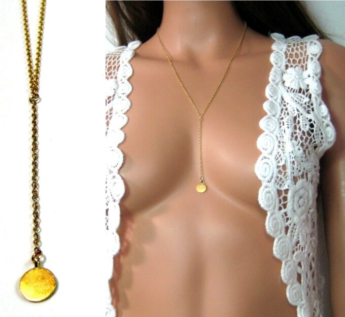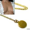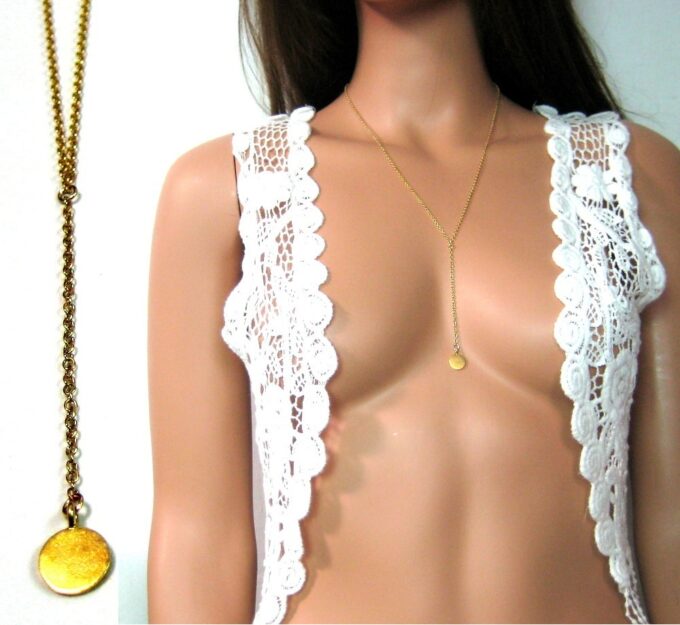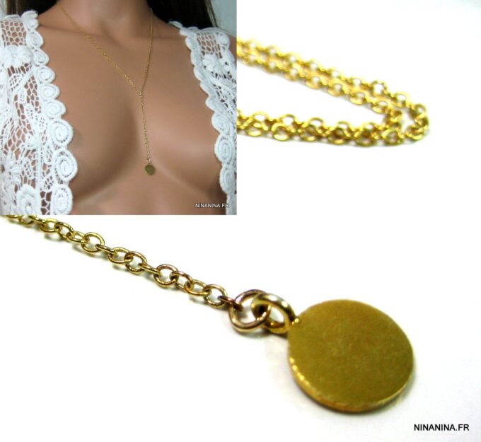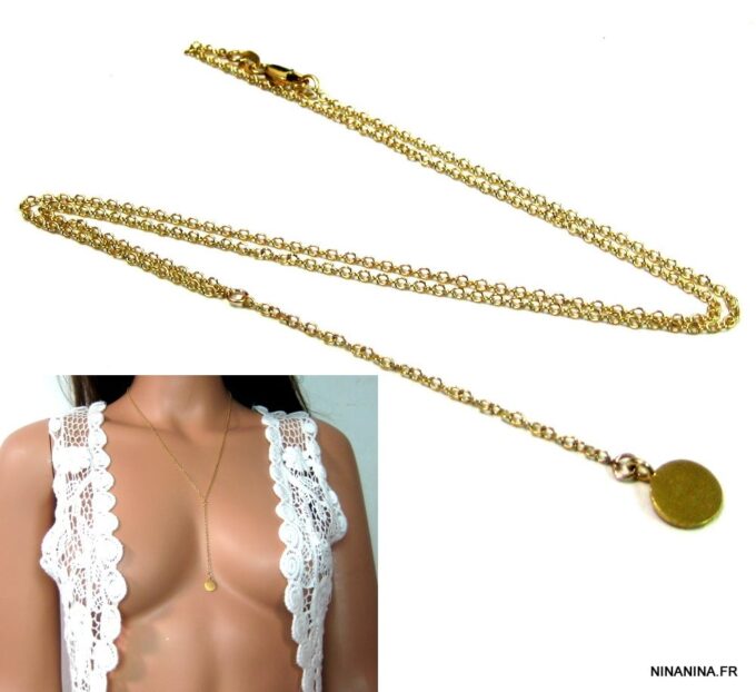 Collier cravate Lasso Argent 925 massif Plaqué Or composé d’un pendentif cylindrique en argent 925 martelé plaqué or 24 carats monté sur une chaine en plaqué or 14 carats. Fermoir mousqueton. Longueur (fermoir compris) : 55 + 15 cm de pendant environ. Livré dans sa pochette d’organza.