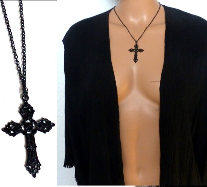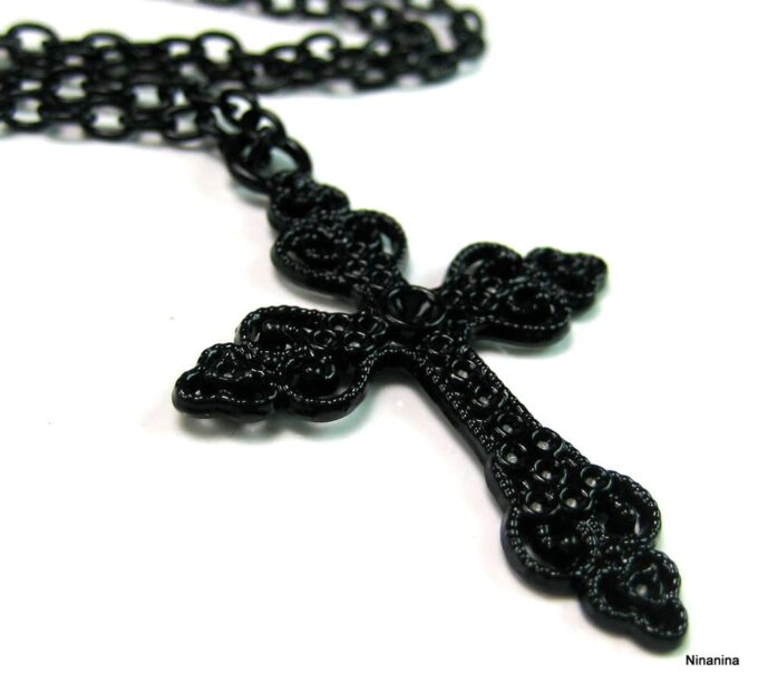Pour vous qui êtes à la recherche d’une croix originale, ce collier en métal noir et sa croix céleste travaillée en filigrane va vous taper dans l’oeil! Un beau cadeau qui collera autant à un look pieux, qu’à un style Rock, voir gothique!
