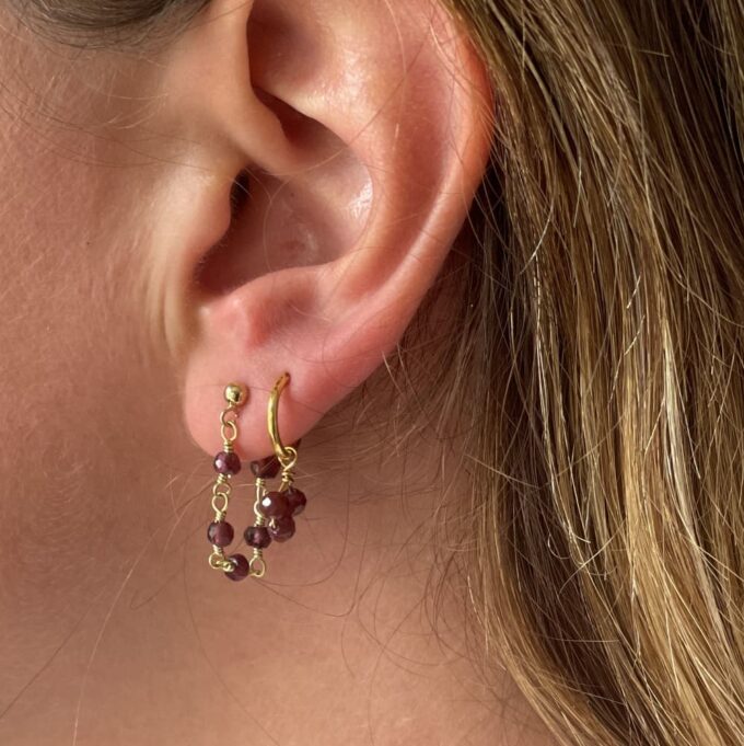 Que ce soit pour une soirée élégante ou une touche de sophistication au quotidien, cette composition de boucles d’oreilles saura rehausser votre look avec audace. Associez-la à d’autres bijoux en grenat et or pour un ensemble harmonieux.