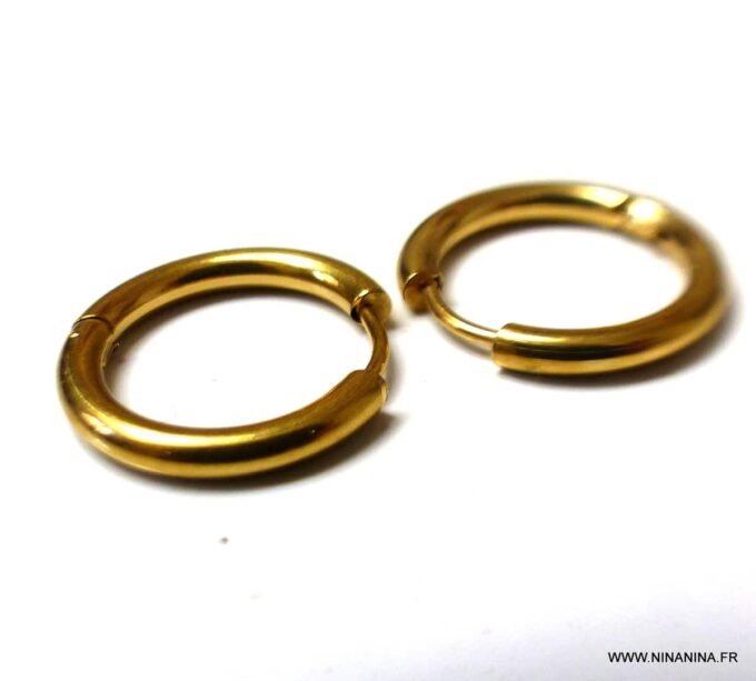 Boucles d’oreilles Créoles Acier doré fil rond diamètre 19 mm