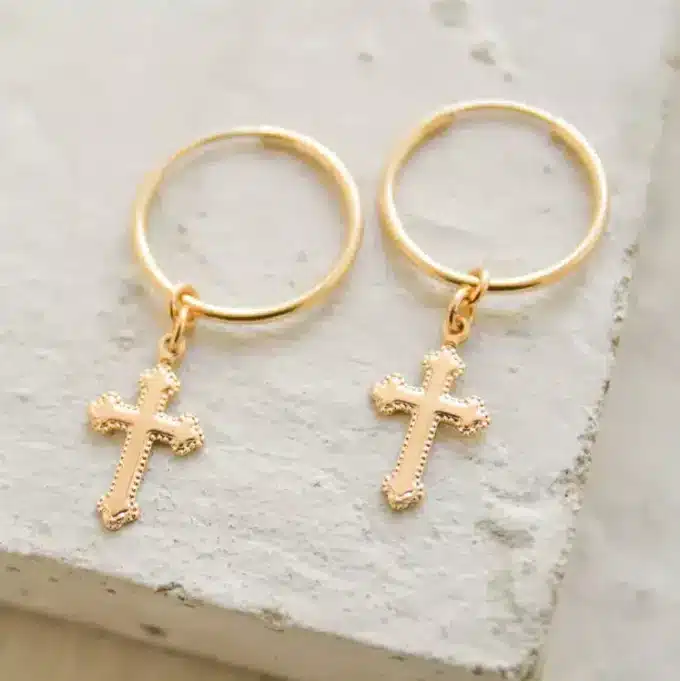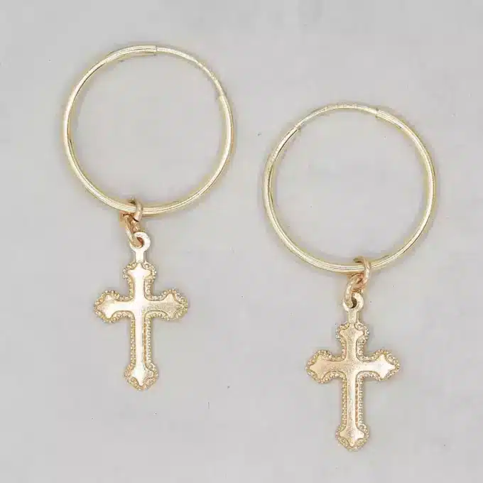 Soyez le premier à laisser votre avis sur “Creoles avec croix femme plaqué or 14 mm”