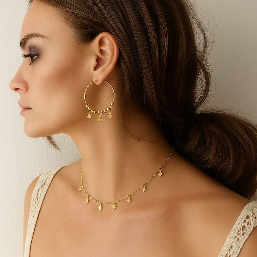 Créoles dorées artisanales avec charms losange – Le style du bohème chic pas excellence