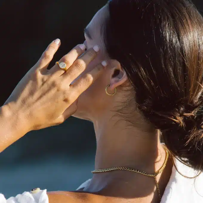 - Attachez vos cheveux en chignon bas ou en queue-de-cheval élégante pour mettre en valeur vos boucles d’oreilles.